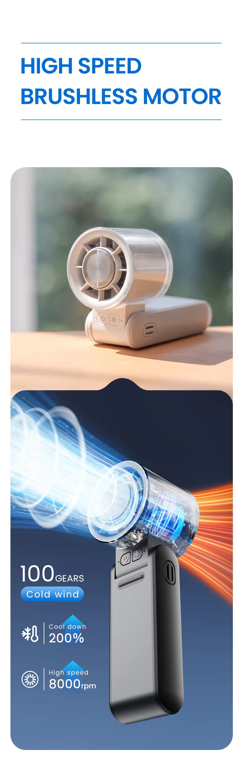 Be the first to review “High Speed Portable Foldable 100 Gears Wind Mini Handheld Fan Custom Logo Rechargeable Cooling Travel USB Handy Fan”